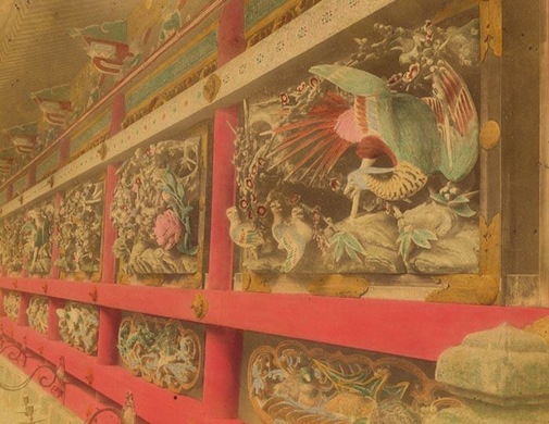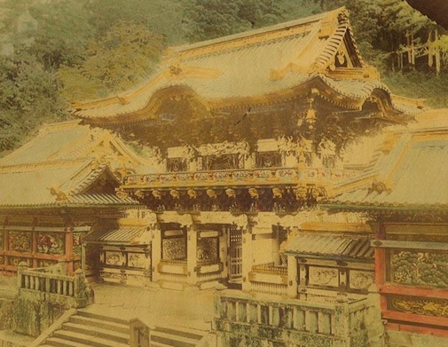 ▲ ちなみに、今の陽明門はネット上でも下のような写真を見ることができますが、上の昔の写真のほうが、「きれいに記録を残そう」という意志を感じます。彩色によって金色に輝いている。