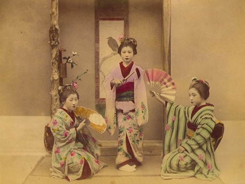 ▲ こちらも芸者さん。真ん中で踊る女性は漫画のサザエさんと似ていますね。