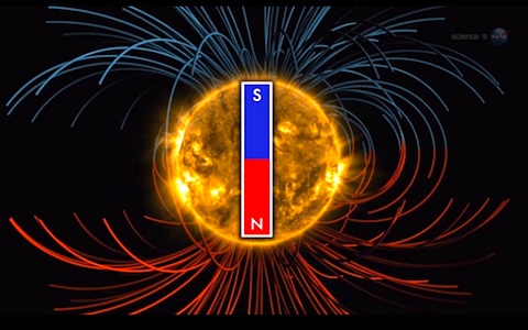 太陽の磁場の極性の変化は、およそ 11年周期で発生する。それは、太陽の内側の磁気ダイナモを再編成する各太陽周期のピーク時に発生する。これからやって来る太陽磁場の反転は、サイクル24(第24太陽活動周期)の中間点にある。