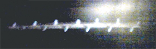 いろいろな可能性を考えましたけれど、こういう光の形はちょっと何であるかの想像も難しいです。