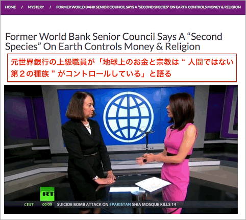 ・世界銀行の元シニア職員カレン・ヒューズさんの発言:「地球上のお金と宗教は “ 人間ではない別の種族 ” がコントロールしている」
