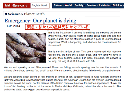 ▲ 2014年6月1日のロシアのプラウダ Emergency: Our planet is dying より。