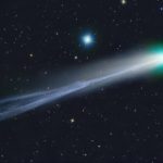 ▲ 2013年11月頃に、「月くらいの大きさに光る」と考えられている、近代の天体観測史上で最も明るく見える可能性のある彗星アイソンが夜空に見える時の想像図。月よりも大きく輝く可能性が指摘されています。 ...