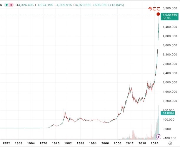 1952年からの金価格の推移