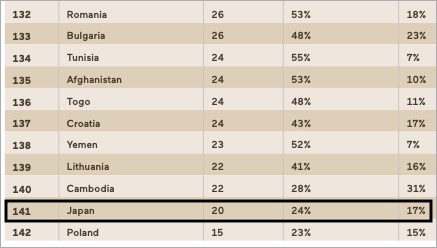 などとなっていますが、いろんなランキングで常に上位であるノルウェーがここでも上位で、そして、日本も非常に高いです。