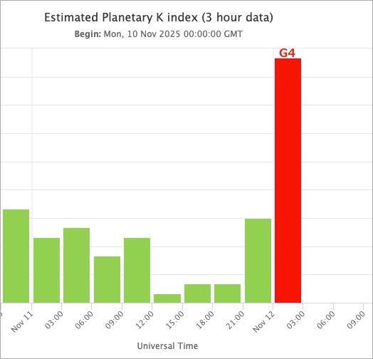 ステファン・バーンズ氏の主張は、2025年11月11日から12日にかけての地磁気嵐が、以下の理由から Geospace モデルの運用履歴の中で類を見ないほどの強度と範囲を持っていたという文脈を示しています。