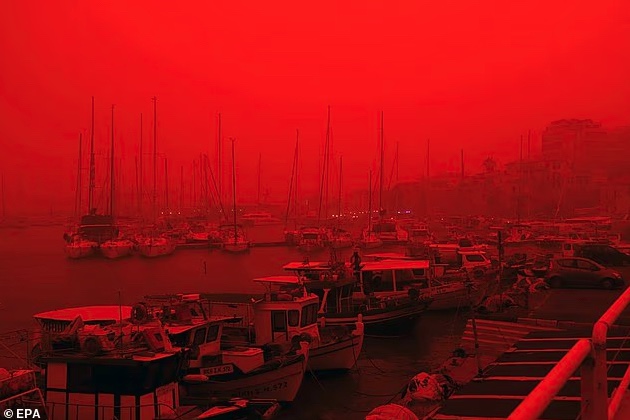 ・オーストラリアが赤く染まった数日後、今度はギリシャのクレタ島がアフリカからの砂嵐の影響で真っ赤に