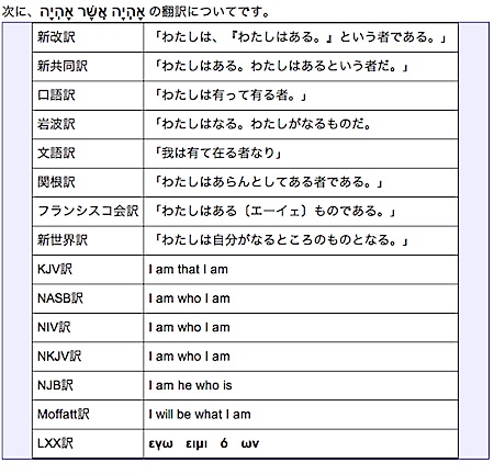 これはですね、はっきり言って「日本語として崩壊している」のですが、しかし、この「出エジプト記 / 3章 14節」というのは、日本語だけではなく、あらゆる言語で訳すのが難しい章だということを今回、調べ直して知りました。