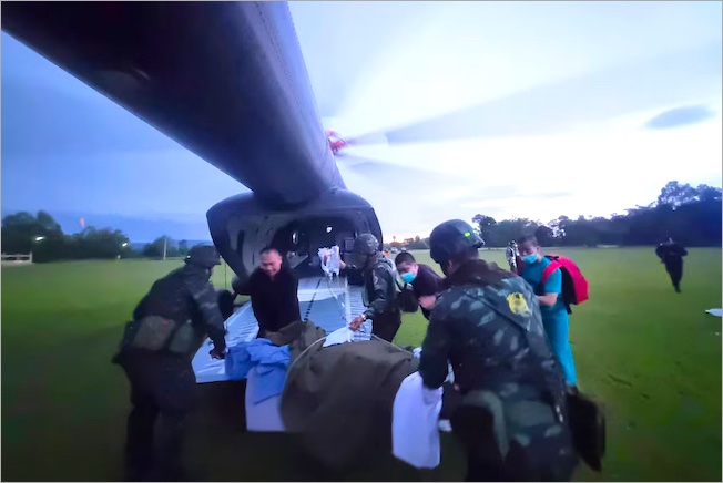 2025年7月23日 カンボジア軍の地雷で負傷したタイ軍兵士がヘリコプターで搬送される